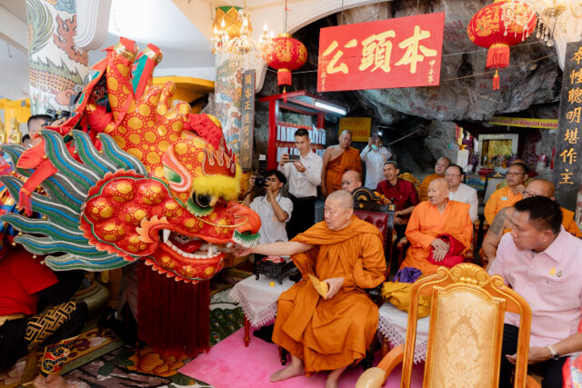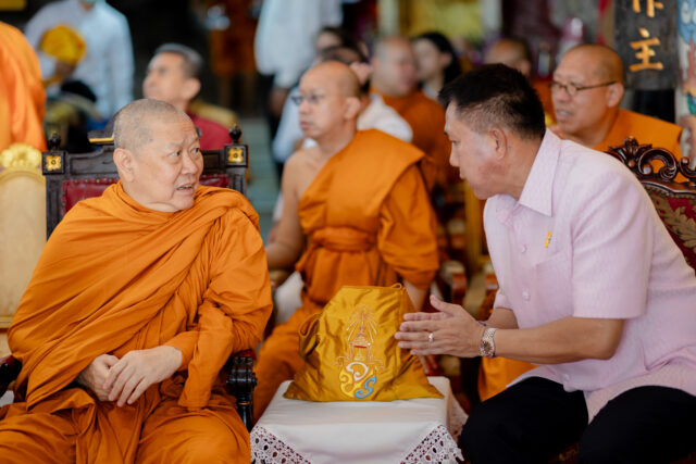 เจ้าประคุณสมเด็จพระมหารัชมงคลมุนี (สมเด็จธงชัย ธมฺมธโช) เจ้าคณะใหญ่หนกลาง กรรมการมหาเถรสมาคม ผู้ช่วยเจ้าอาวาสวัดไตรมิตรวิทยารามวรวิหาร ประธานมูลนิธิร่มฉัตร ประธานมูลนิธิอี๋ ไต้ อี๋ ลู่ และประธานสถาบันขงจื่อเส้นทางสายไหมทางทะเล เป็นองค์ประธานในพิธีพุทธาภิเษกวัตถุมงคล บูชาทวยเทพ พระธรรมบาล 24 พระองค์ และวาระครบรอบศาลเจ้าพ่อเขาใหญ่เกาะสีชัง ร่วมด้วย พระคูรปลัดสิทธิวัฒน์ (หลวงพี่น้ำฝน)เจ้าอาวาสวัดไผ่ล้อม จ.นครปฐม พระอาจารย์จีนธรรมานุกร เย็นเกามหาเถระ ผู้ช่วยเจ้าคณะใหญ่ฝ่ายซ้ายจีนนิกาย เจ้าอาวาสวัดโพธิทัตตาราม (โผวเต็กยี่) อ.ศรีราชา จ. ชลบุรี องปลัดวิเชียร เถี่ยนอี้ เจ้าอาวาสวัดถ้ำเขาน้อย รองเจ้าคณะใหญ่ฝ่ายอนัมนิกาย จ.กาญจนบุรี หลวงจีนปลัดเย็นจุง เจ้าอาวาสวัดจีนประซาสโมสร (เล่งฮกยี่) ผู้ช่วยเจ้าคณะใหญ่ฝ่ายขวาจีนนิกาย อ.เมืองฉะเชิงเทรา จ.ฉะเชิงเทรา องปลัดธรรมปัญญาธิวัตร (ธีระยุทธ เถี่ยนคาย) เจ้าอาวาสวัดอุภัยภาติการาม (ซำปอกง) อ.เมืองฉะเชิงเทรา จ.ฉะเชิงเทรา เจ้าคณะใหญ่อนัมนิกาย และอาจารย์แขก รือเสาะ มันตระสยาม ถวายการต้อนรับ