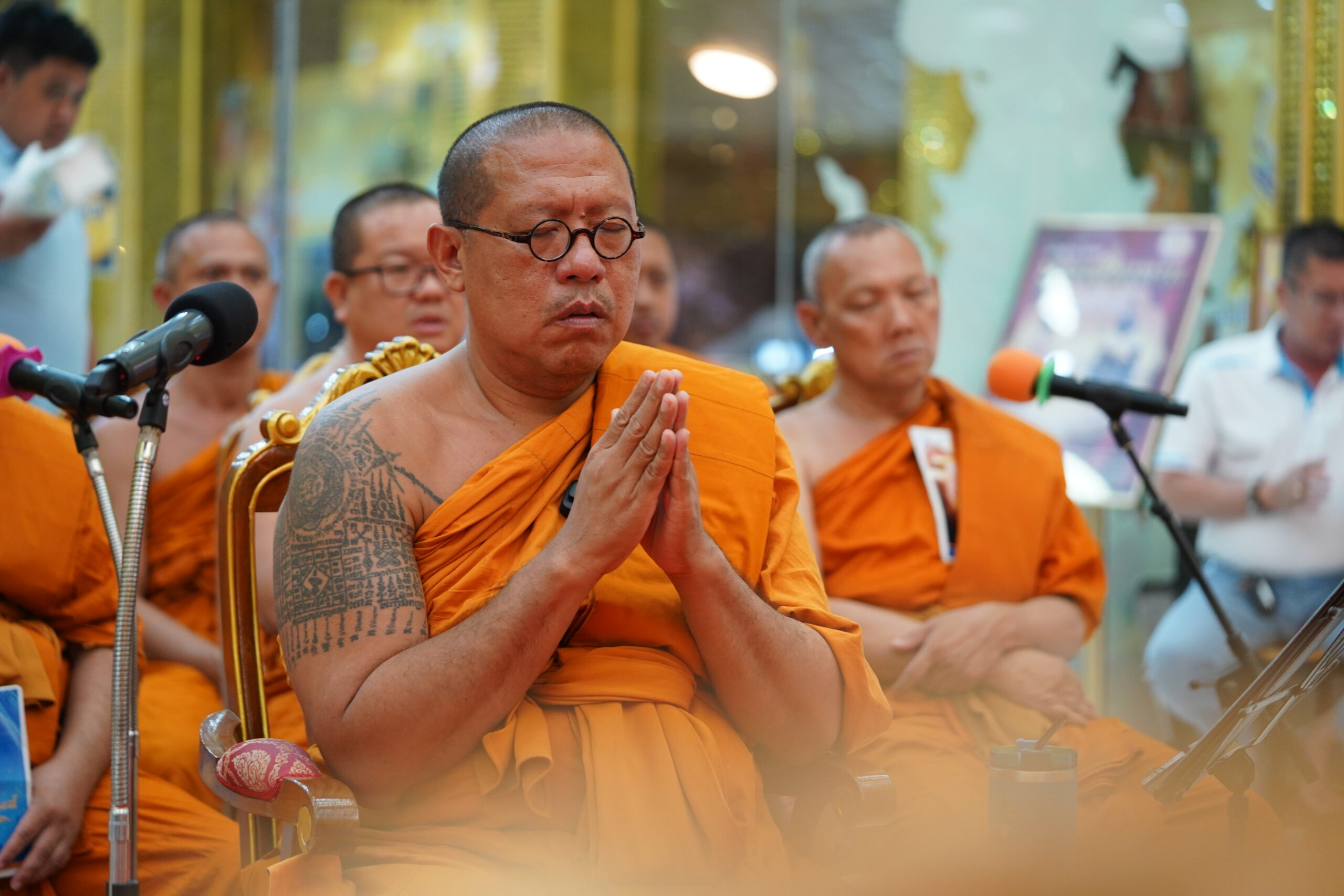 หลวงพี่น้ำฝน จัดพิธี ขอขมากรรม พระสงฆ์สวดเจริญพระพุทธมนต์ เปลี่ยนเสื้อสีม่วงรับมงคลชีวิต ปลดทุกข์
