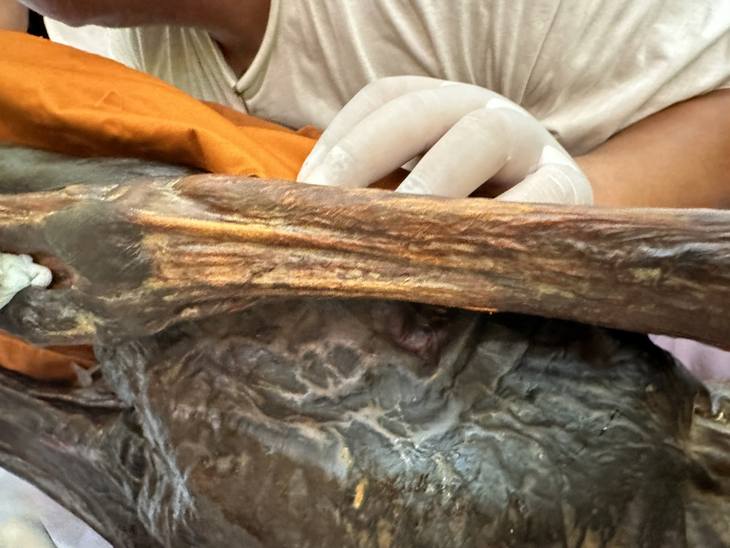 โดยบรรยากาศในพิธีนั้น สาธุชน ศิษยุศิษย์ในพิธีต่างฮือฮอาเป็นอย่างยิ่ง เมื่อเจ้าหน้าที่วัดได้เคลื่อนย้ายสรีระหลวงพ่อพูลออกจากโลงแก้ว แล้วนำลงมาเช็ดตัวทำความสะอาดเปลี่ยนผ้า ต่างได้สังเกตว่า บริเวณหัวไหล่ ช่วงท้อง ลำตัวได้เปลี่ยนสีคล้ายสีประกายทอง นอกจากนี้ยังมีเส้นผม และเล็บที่ยาวออกมาด้วย คล้ายกับยังมีชีวิต ต่างยกมือท่วมหัวอธิษฐานขอพร หลังเสร็จสิ้น หลวงพี่น้ำฝนได้ให้สาธุชน ก้มกราบที่ปลายเท้าแล้วก้มศีรษะจรดที่ปลายเท้าของหลวงพ่อพูลจากนั้นได้ทำการคลานเข่าเพื่อลอดใต้โต๊ะ เพื่อความเป็นศิริมงคล