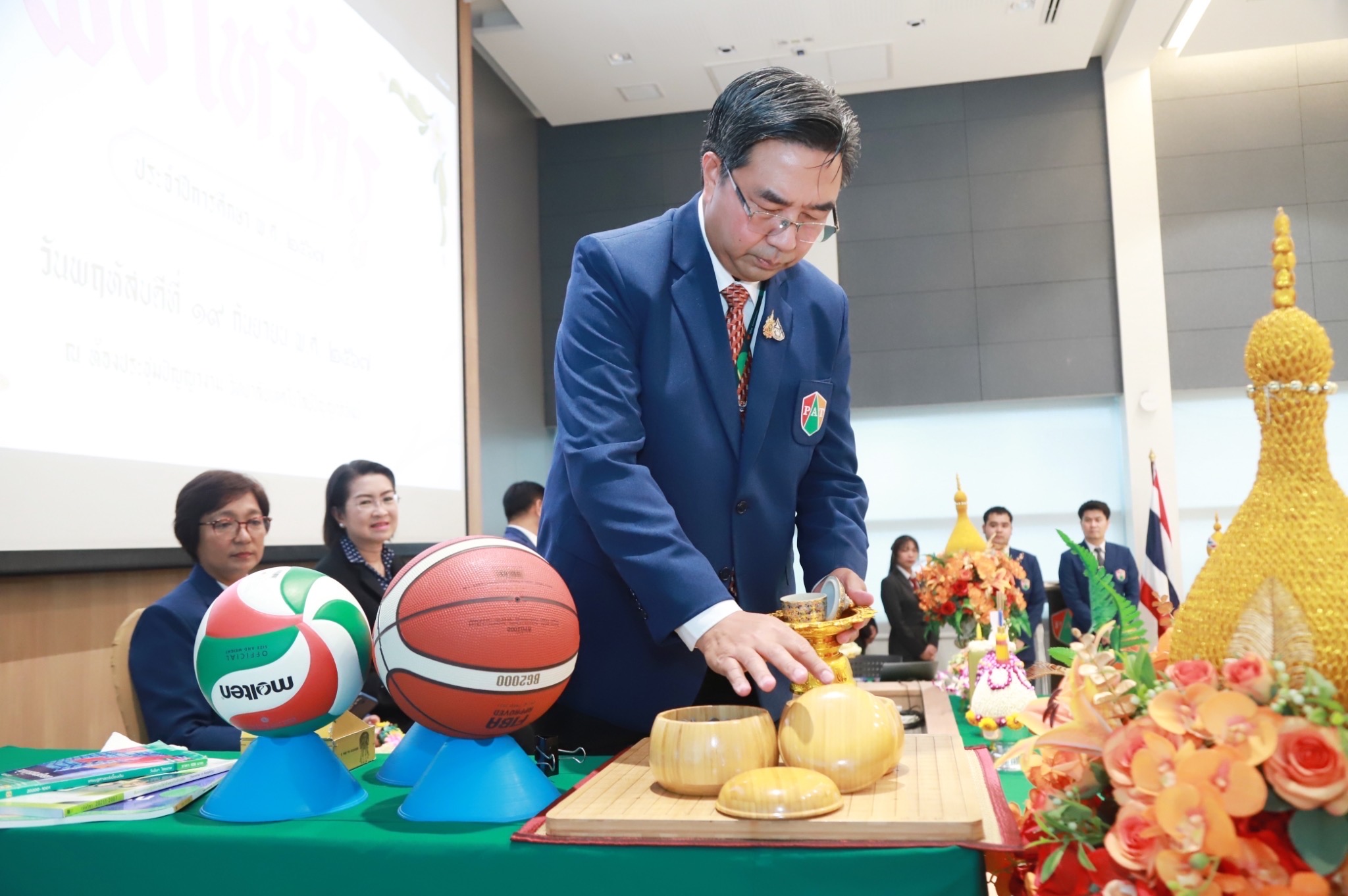 โดยมีนางอรวรรณ ไชยมาตย์ ผู้ช่วยกรรมการผู้จัดการบริษัทซีพีออลล์ จำกัด(มหาชน), นางอิสรีย์ ลีลาอำไพ ผู้จัดการฝ่ายบริหารเครือข่ายสถานศึกษา สำนักประสานรัฐกิจ , นายบุญส่ง มาสกุล ผู้จัดการฝ่าย สำนักปฏิบัติการ2 (NB), นายเสถียร พันแสน ผู้จัดการฝ่าย สำนักปฏิบัติการ3(BN)และคณะที่ปรึกษา ผู้บริหาร ครู นักเรียน นักศึกษา ร่วมในพิธี สำนักกิจการนักเรียน นักศึกษาดำเนินการจัดพิธีไหว้ครูเพื่อให้นักเรียน นักศึกษา ได้แสดงออกถึงความเคารพ ความกตัญญูกตเวทีและร่วมใจกันระลึกถึงพระคุณครู อาจารย์ที่ได้อบรมสั่งสอน ให้คำปรึกษาดูแลลูกศิษย์มาโดยตลอด พิธีไหว้ครูปีนี้จัดภายใต้แนวคิด “ 1 พาน 1 มาลัย ไหว้ครู ”