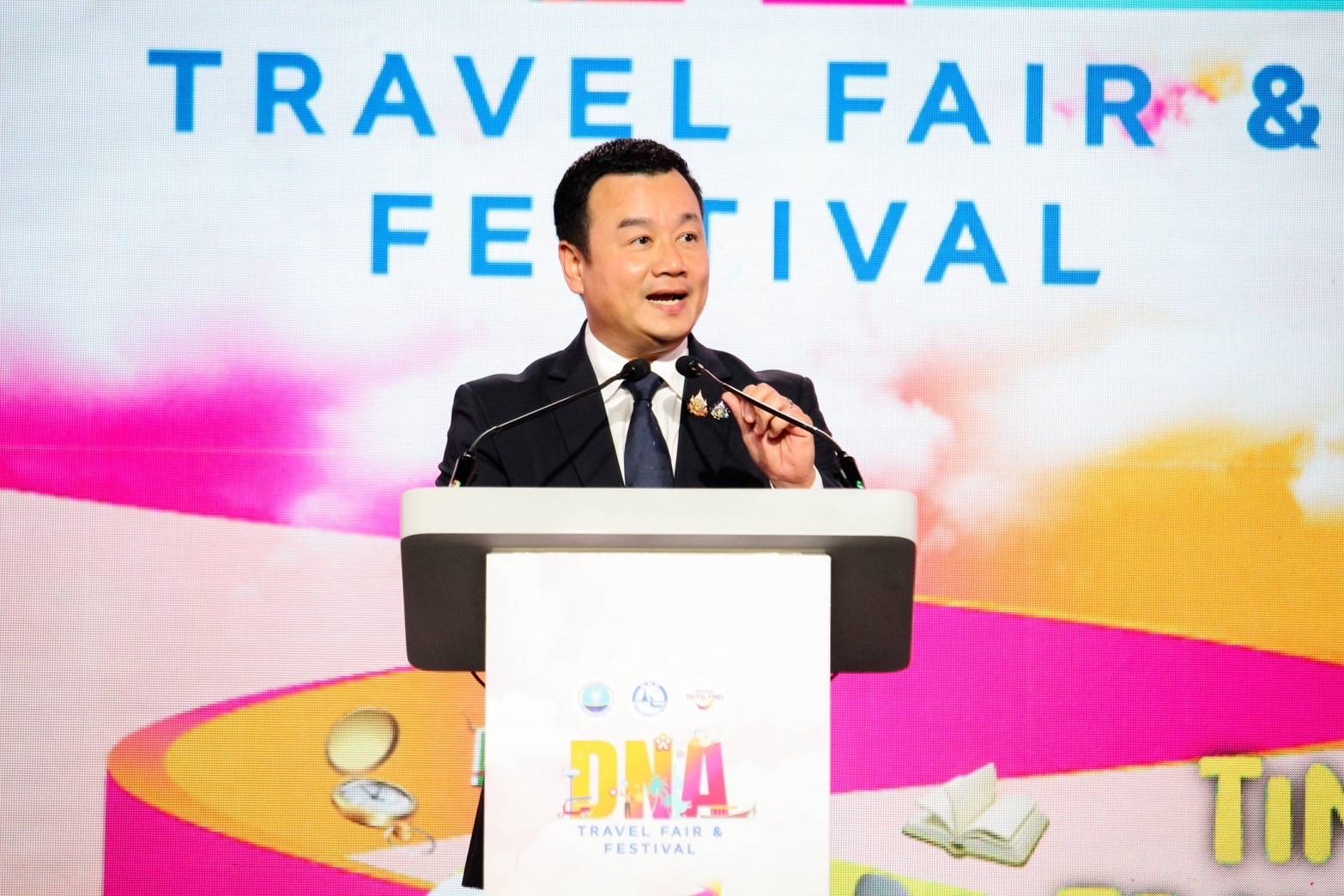 นายสรวงศ์ เทียนทอง รัฐมนตรีว่าการกระทรวงการท่องเที่ยวและกีฬา กล่าวว่า กระทรวงการท่องเที่ยวและกีฬา มีเป้าหมายในการขับเคลื่อนอุตสาหกรรมการท่องเที่ยวไทยให้เป็นศูนย์กลางทางการท่องเที่ยวของภูมิภาค (Tourism Hub) และเป็นจุดหมายปลายทางของนักท่องเที่ยวทั้งในและต่างประเทศ ขณะเดียวกันได้มุ่งยกระดับห่วงโซ่อุปทานอุตสาหกรรมท่องเที่ยวให้พร้อมรองรับนักท่องเที่ยวคุณภาพด้วยการนำเสนอประสบการณ์การท่องเที่ยวที่หลากหลายพร้อมตอบโจทย์กลุ่มเป้าหมายที่แตกต่างกันได้อย่างมีประสิทธิภาพ ควบคู่ไปกับการส่งเสริมการท่องเที่ยวอย่างใส่ใจสิ่งแวดล้อมเพื่อนำไปสู่ความยั่งยืน การจัดงาน DNA Travel Fair & Festival ในครั้งนี้ นอกจากจะนำเสนอประสบการณ์ทางการท่องเที่ยวหลากหลายรูปแบบให้กับนักท่องเที่ยวแล้ว ยังเป็นส่วนหนึ่งในการช่วยสนับสนุนผู้ประกอบการในภาคอุตสาหกรรมท่องเที่ยว เพื่อขับเคลื่อนอุตสาหกรรมท่องเที่ยวให้เติบโตอย่างแข็งแรงและยั่งยืน