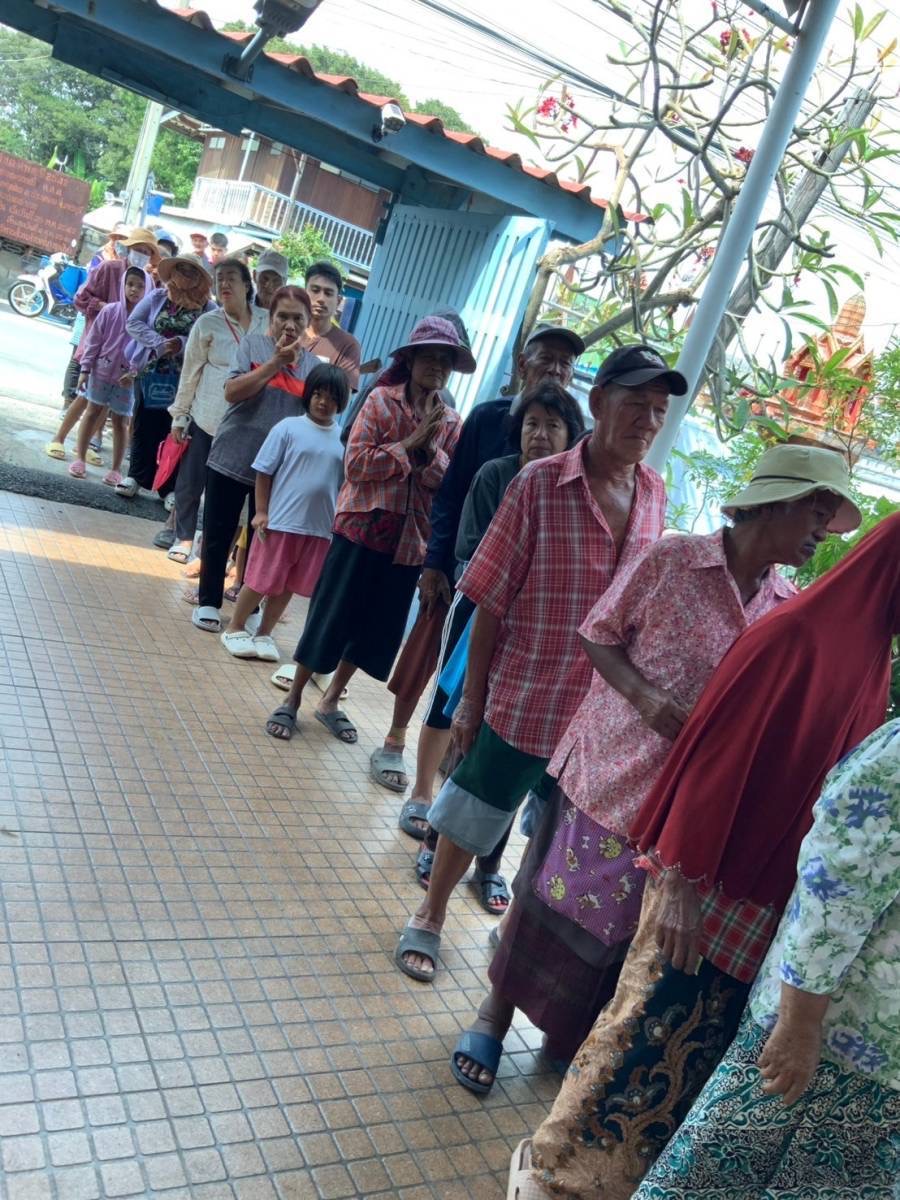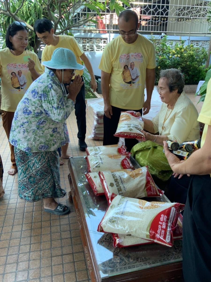 หลังเสร็จสิ้นพิธีสงฆ์ได้แจกข้าวสาร ยาเคอร่าสำหรับรักษาไข้ และน้ำมันเหลืองกิมลุ้ยสำหรับนวดแก้อาการปวดเมื่อยเส้นตึงและแมลงกัดต่อยให้กับชาวบ้านในพื้นที่ตำบลบางขุนไทรอำเภอบ้านแหลมจังหวัดเพชรบุรี จำนวน 500 ครอบครัวเพื่อใช้ดูแลสุขภาพสำหรับครอบครัวต่อไป