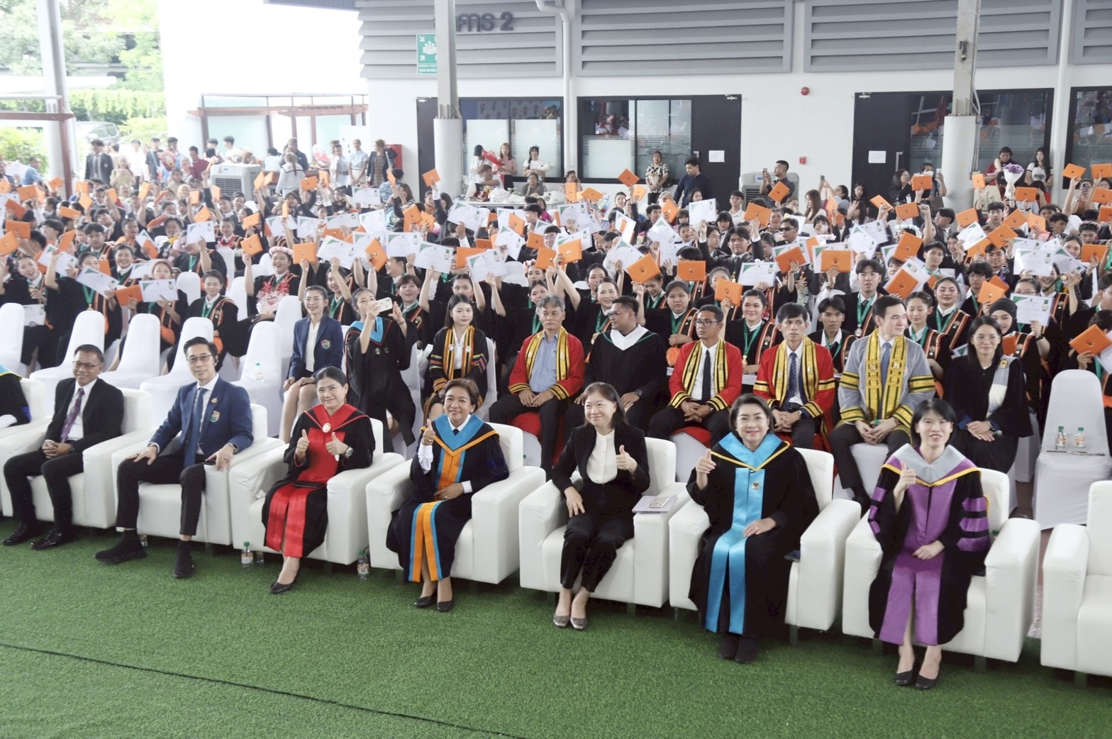 จากนั้น นางสาวปาณิสรา กาญจนะจิตรา รองผู้ว่าราชการจังหวัดนนทบุรีมอบประกาศนียบัตรแก่ผู้สำเร็จการศึกษา แล้วกล่าวแสดงความยินดีและชื่นชมการดำเนินการจัดการศึกษาของบริษัทซีพีออลล์และวิทยาลัยเทคโนโลยีปัญญาภิวัฒน์ ถือเป็นต้นแบบในการจัดการอาชีวศึกษาระบบทวิภาคี มีพันธกิจมุ่งผลิตคนมีคุณภาพ ตลอดสร้างองค์ความรู้และนวัตกรรมด้านการศึกษาในทุกมิติ ผู้สำเร็จการศึกษาทุกคนได้ชื่อว่าเป็นผู้ที่มีความรู้ มีสติปัญญา เปึนที่ยอมรับของสังคม หลายคนมีเป้าหมายในการศึกษาต่อในระดับที่สูงขึ้น ขณะที่บางคนออกไปประกอบอาชีพตามความต้องการเพื่อสร้างรายได้ดูแลตนเองและครอบครัว จึงขอให้ทุกคนมีความตั้งใจ มีความอดทน มีความรับผิดชอบในการเรียนและการปฏิบัติงานเพื่อให้บรรลุผลสำเร็จตามเป้าหมายต่อไป.