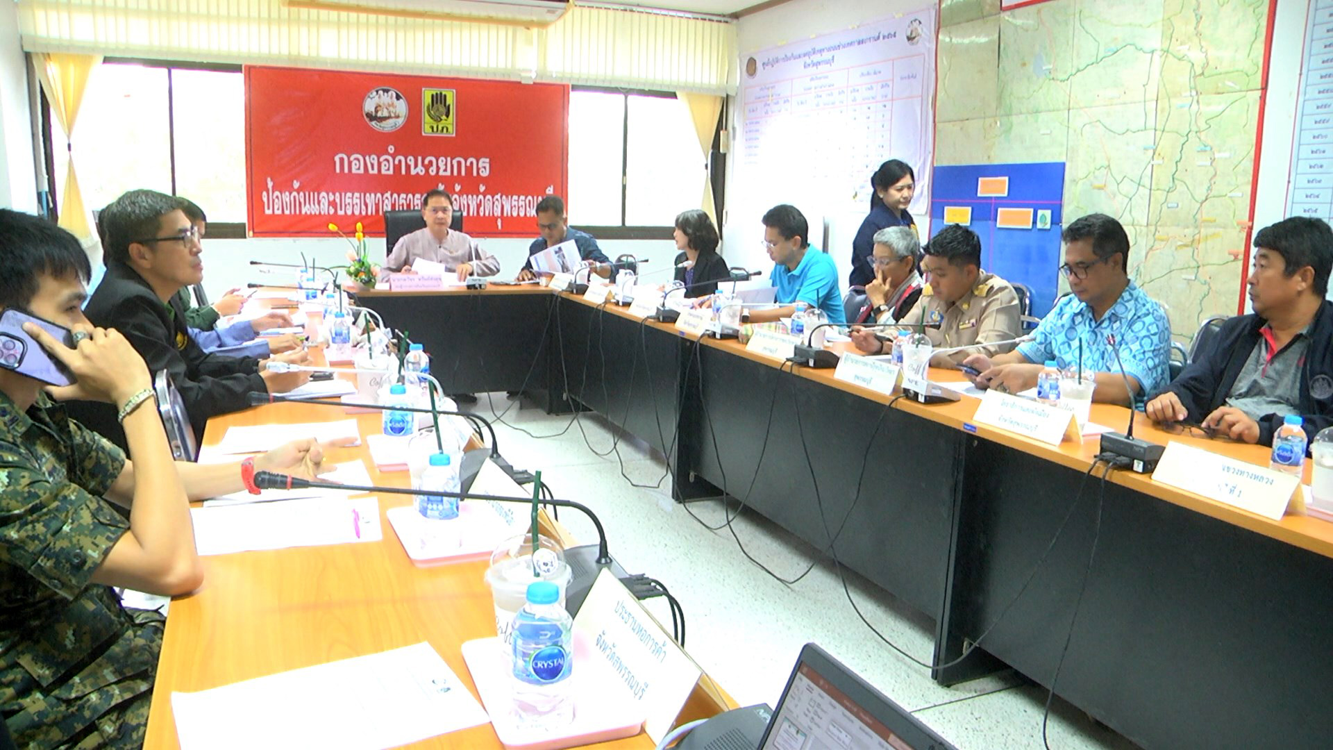 โดยมีนางสาวกมลชนก เจียรวิวัฒนวงศ์ หัวหน้าสำนักงานป้องกันและบรรเทาสาธารณภัยจังหวัดพังงา รักราชการแทนหัวหน้าสำนักงานป้องกันและบรรเทาสาธารณภัยจังหวัดสุพรรณบุรี หัวหน้าหน่วยงานที่เกี่ยวข้อง เข้าร่วมประชุมเพื่อ หาทางรับมือในการป้องกันแก้ไข ถึงแม้ขณะนี้สถานการณ์จะเริ่มคลี่คลายระดับน้ำในแม่น้ำท่าจีนจะลดลงมาแล้วก็ตาม เพื่อความไม่ประมาทหากเกิดปัญหาน้ำท่วมขึ้นในพื้นที่จะได้ป้องกันแก้ไขได้ทันที