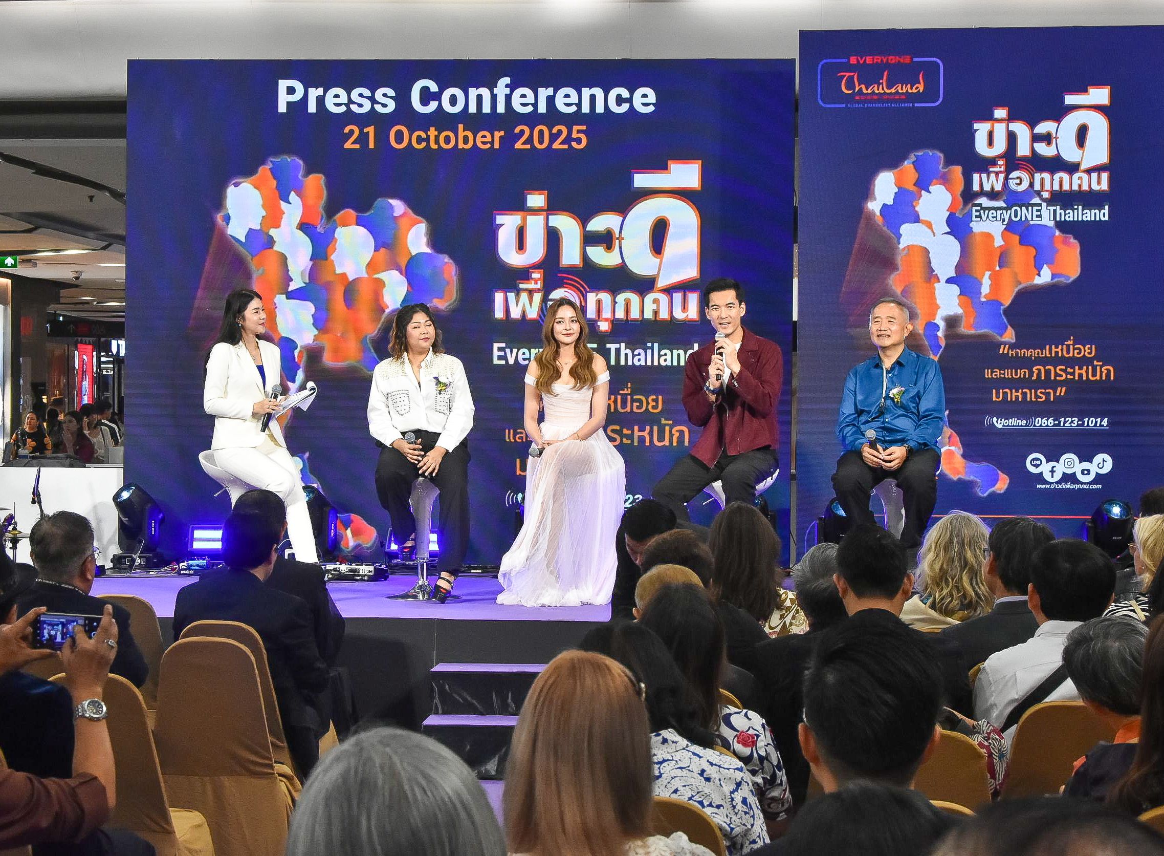 ………….แถลงข่าวเปิดตัวอย่างยิ่งใหญ่และเต็มไปด้วยพลังบวก สำหรับโครงการสร้างแรงบันดาลใจแห่งปี “EveryONE Thailand : ข่าวดีเพื่อทุกคน” โดยมี 3 เซเลบคริสเตียนชื่อดัง อย่าง ปุ๊กลุก-ฝนทิพย์ วัชรตระกูล, นักร้องเสียงคุณภาพ เต้น-นรารักษ์ ใจบำรุง และ โค้ชเบสท์-ณรรฐพงษ์ ผู้ภักดีวงศ์ ร่วมโครงการฯ พร้อมแบ่งปันประสบการณ์ชีวิต เพื่อมอบความหวังให้คนไทยที่กำลังเผชิญกับปัญหาชีวิตทุกด้าน งานจัดขึ้นภายใต้บรรยากาศอันอบอุ่นไปด้วยความรัก เมื่อวันที่ 21 ตุลาคม 2025 ณ ศูนย์การค้าเซ็นทรัลลาดพร้าว