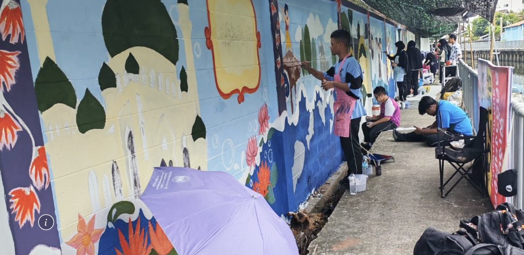 ที่บริเวณท้ายซอยลาดพร้าว 95 แขวงคลองเจ้าคุณสิงห์ เขตวังทองหลาง กรุงเทพมหานคร นายบัณฑิต แป้นเมือง ผู้จัดการศูนย์การเรียนปัญญาภิวัฒน์ บางกะปิ พร้อมด้วยนาย น้อม พรมเอียด เจ้าหน้าที่พัฒนาวินัยอาวุโส และนายนิวัฒน์ ศรีเอี่ยม เจ้าหน้าที่พัฒนาวินัย สำนักกิจการนักเรียน นักศึกษา วิทยาลัยเทคโนโลยีปัญญาภิวัฒน์ นำครู นักเรียนจากศูนย์การเรียนปัญญาภิวัฒน์ บางกะปิ ร่วมกิจกรรมจิตอาสาทาสีกำแพงริมคลองร่วมกับสำนักงานเขตวังทองหลาง