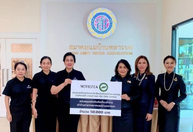สมาคมสตรีนักธุรกิจและวิชาชีพแห่งประเทศไทย-นครปฐม ร่วมกับบริษัท แกรนด์ คอส กรุ๊ป จำกัด (มหาชน) ภายใต้ แบรนด์ MERREZ’CA สนับสนุนผลิตภัณฑ์เครื่องสำอางเข้าร้านกาชาดสมาคมแม่บ้านทหารบก มูลค่า 50,000บาท