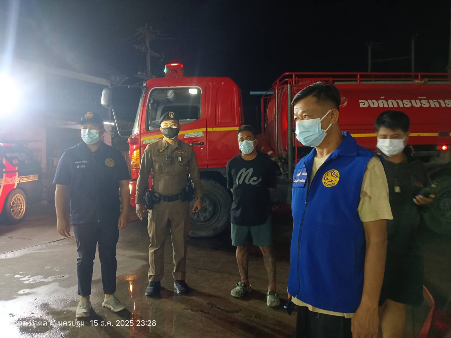 วันที่ 15 ธันวาคม 2568 เวลา 23.30 น.เจ้าหน้าที่ได้รับแจ้งเหตุ มีสารเคมีรั่วไหล (แอมโมเนีย ) จากบริษัทสยามปิรามิด จำกัด เลขที่ 31/1 ม.3 ต.ท่าตลาด นครปฐม ซึ่งเป็นโรงงานผลิตน้ำแข็ง