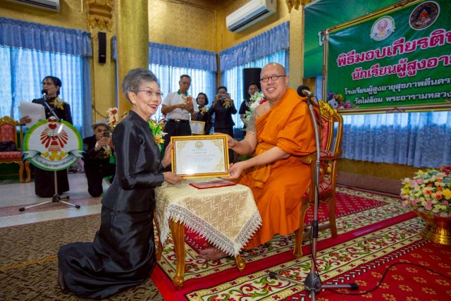 นายก อบจ.นครปฐม มอบประกาศเกียรติบัตร โรงเรียนผู้สูงอายุสุขภาพดีนครปฐมวัดไผ่ล้อม รุ่นที่ 8