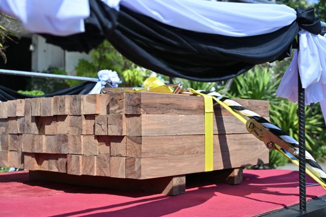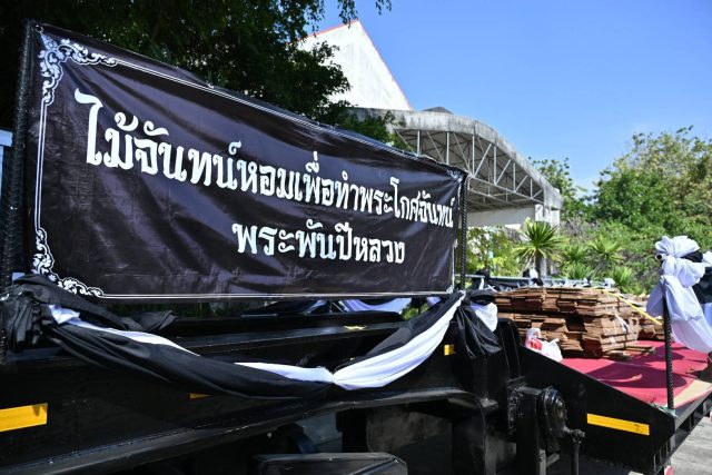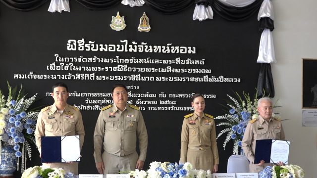 กระทรวงทรัพยากรธรรมชาติและสิ่งแวดล้อม ส่งมอบไม้จันทน์หอม ให้กับกระทรวงวัฒนธรรม ณ สำนักช่างสิบหมู่ จังหวัดนครปฐม ในการจัดสร้างพระโกศจันทน์และพระหีบจันทน์ เพื่อใช้ในงานพระราชพิธีถวายพระเพลิงพระบรมศพ สมเด็จพระนางเจ้าสิริกิติ์ พระบรมราชินีนาถ พระบรมราชชนนีพันปีหลวง