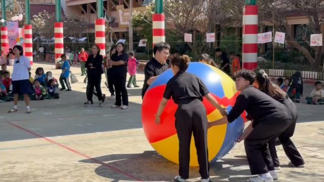 ไม่รู้ใครสนุกกว่ากันระหว่างคุณครูที่รวมตัวมาเล่นกีฬาวอลเลย์บอลด้วยลูกบอลสีรุ้งลูกใหญ่ ภายในงานกิจกรรมวันเด็กแห่งชาติประจำปี 2569 โดยที่โรงเรียนวัดไผ่ล้อม (พูลประชาอุปถัมภ์) จังหวัดนครปฐม ได้จัดขึ้น เพื่อเป็นการสร้างรอยยิ้มและเสียงหัวเราะร่วมกับน้องน้องหนูๆ นักเรียนระดับชั้นอนุบาลและชั้นประถมศึกษาซึ่งบรรยากาศพบว่าเหมือนจะเป็นครูที่มีเสียงหัวเราะสนุกสนานไม่แพ้น้องๆที่มาคอยเชียร์อยู่ข้างสนาม