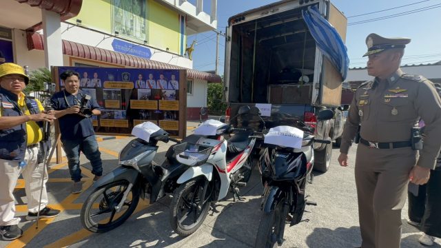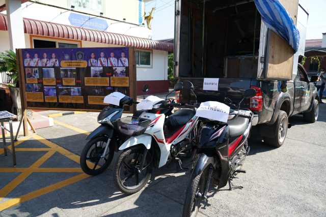 ผู้การตำรวจภูธรจังหวัดนครปฐม แถลงข่าวจับแก๊งค์ลักรถจักรยายนต์ส่งขายไปลาว