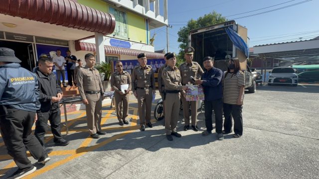 พร้อมกันนี้ผู้เสียหายได้นำกระเช้ามอบแสดงความขอบคุณแก่เจ้าหน้าที่ชุดจับกุมอีกด้วย