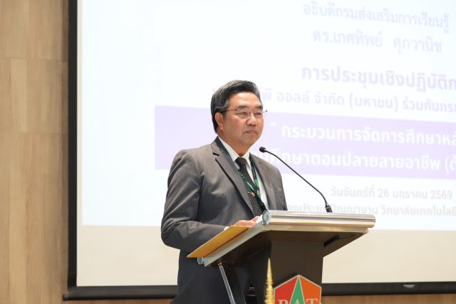 ดร.เกศทิพย์ ศุภวานิช อธิบดีกรมส่งเสริมการเรียนรู้ เป็นประธานเปิดการประชุมเชิงปฏิบัติการระหว่างกรมส่งเสริมการเรียนรู้กับบริษัทซีพีออลล์ จำกัด(มหาชน) และวิทยาลัยเทคโนโลยีปัญญาภิวัฒน์ ในหัวข้อ “ กระบวนการจัดการศึกษา หลักสูตรมัธยมศึกษาตอนปลาย สายอาชีพ (ด้านค้าปลีก) และกระบวนการที่เกี่ยวข้องภายใต้บันทึกข้อตกลงความร่วมมือการส่งเสริมการเรียนรู้
