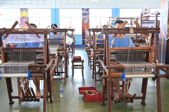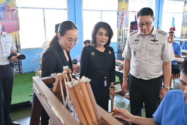 และท่านพันตำรวจโทสุธี ชื่นจิตต์ รองผู้กำกับป้องกันปราบปราม สถานีตำรวจภูธรเพ จ.ระยอง ในฐานะเลขานุการโครงการคืนคนดีสู่สังคม เยี่ยมชมกิจกรรมส่งเสริมการทอผ้าลายอัตลักษณ์ประจำจังหวัด “ปูรณฆฏาศรีทวารวดี” ณ เรือนจำกลางนครปฐม ซึ่งจังหวัดนครปฐมได้ส่งเสริมให้ผู้ต้องขังชายฝึกอบรมทอผ้าเพื่อสร้างอาชีพและรายได้เลี้ยงตนเองระหว่างต้องโทษ