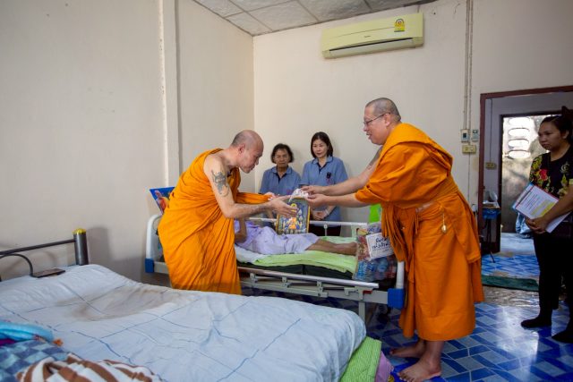 โดยเรื่องราวดังกล่าว พระครูปลัดสิทธิวัฒน์ (หลวงพี่น้ำฝน) ผู้รักษาการแทนเจ้าอาวาสวัดไผ่ล้อมพระอารามหลวง จังหวัดนครปฐม ได้นำคณะสงฆ์และเจ้าหน้าที่ประจำโครงการธนาคารแห่งกำลังใจ วัดไผ่ล้อมฯ ประสานงานกับ อสม.ตำบลพ่อพลับ เพื่อนำเตียงสำหรับผู้ป่วย ผู้ป่วย พร้อมรถวีลแชร์ ข้าวสาร น้ำดื่ม ของอุปโภค บริโภค ผ้าอ้อม เพื่อนำไปยังบ้านเลขที่ 116/5 ถ.ทหารบก 4 ต.บ่อพลับ อ.เมือง จ.นครปฐม ไปมอบให้กับ นางกุ้ยเง็ก แซ่แต้ อายุ 74 ปี ผู้ป่วยติดเตียง ที่ป่วยด้วยโรคเบาหวาน,โรคความดันโลหิตสูง,โรคกล้ามเนื้ออ่อนแรง,โรคกระดูกทับเส้น โดยมี พระดำรง ค้าทวี พระลูกชาย อายุ 45 ปี ซึ่งจำพรรษาอยู่วัดพระปฐมเจดีย์ ราชวรมหาวิหาร เป็นผู้ดูแลอยู่ไม่ห่าง