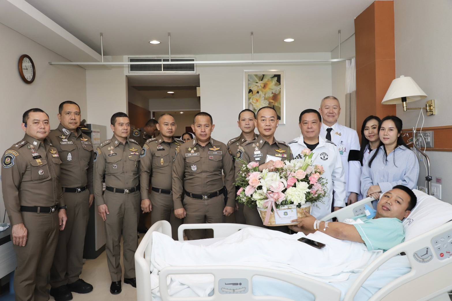พล.ต.อ.อัคราเดช พิมลศรี ที่ปรึกษา ตร. เยี่ยมและให้กำลังใจตำรวจบาดเจ็บจากการปฏิบัติหน้าที่