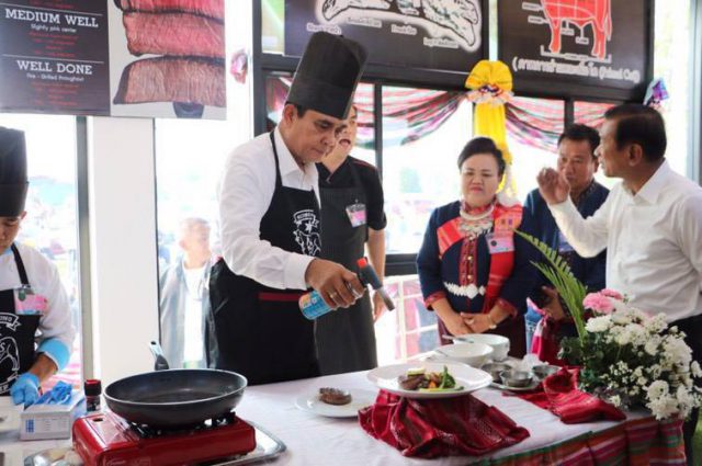 โดยตรวจเยี่ยมสหกรณ์การเกษตรหนองสูง จำกัด สาขาปศุสัตว์ โคขุน เยี่ยมชมการส่งเสริมการเลี้ยงโคขุนหนองสูงของจังหวัดมุกดาหาร ตามโครงการยกระดับคุณภาพการผลิตโคเนื้อคุณภาพเข้าสู่ระบบมาตรฐาน ผลิตภัณฑ์เนื้อโคขุนหนองสูง