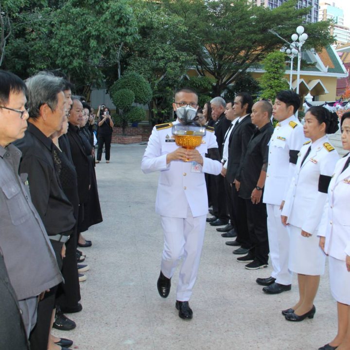 พระบาทสมเด็จพระเจ้าอยู่หัว ทรงพระกรุณาโปรดเกล้าโปรดกระหม่อม พระราชทานน้ำหลวงสรงศพถวายแด่ หลวงปู่แผ้ว